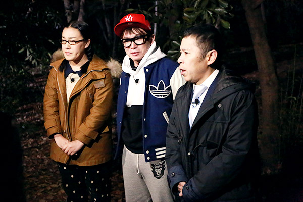 冒頭、怪しげな森に不安気に立ち尽くす岡村、濱口、白鳥。